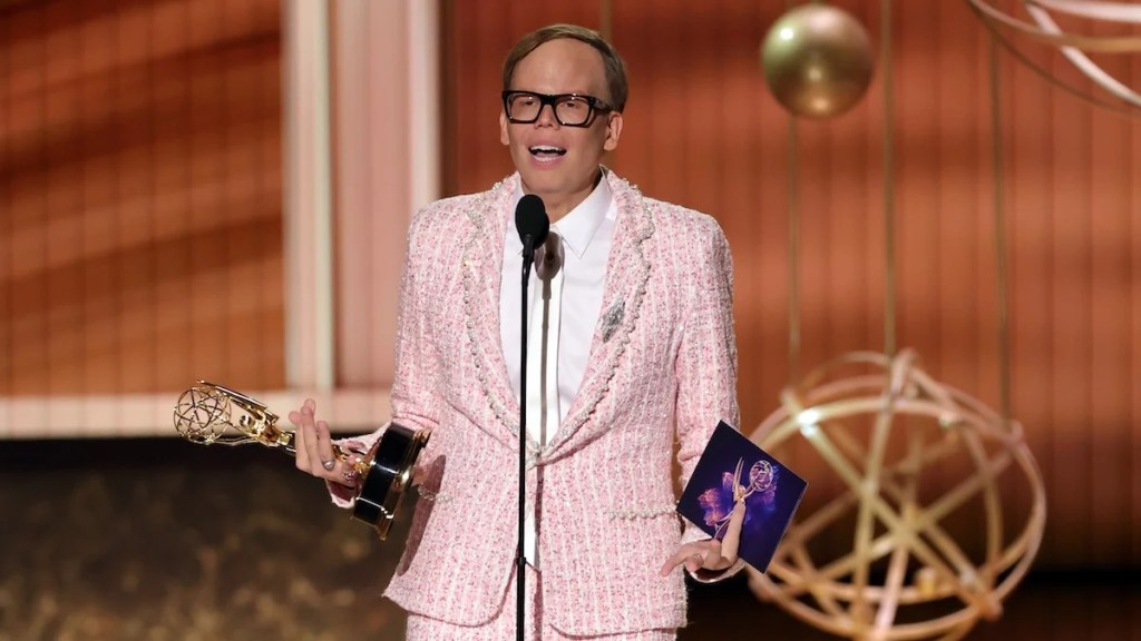 Beating out Harrison Ford, Ike Barinholtz and Colman Domingo, Jeff Hiller took home the Emmy Award for outstanding supporting actor in a comedy series for his performance in “Somebody Somewhere.” Fellow nominees Bowen Yang and Michael Urie appeared shocked and elated for Hiller as Julianne Nicholson announced his name. Hiller thanked co-star Bridget Everett for “changing his life.”
