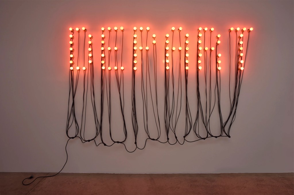 Most of Boltanski’s installations are darkened, with light emanating from bare bulbs or fixtures that suggest surveillance, interrogation or truth-seeking with varying degrees of intensity. At the same time, the haunting light, suggestive of votives on altars or Jewish Yahrzeit candles used to mark the anniversary of one’s death, also brings forth religious undertones. Consistently and dramatically, Boltanski mined life and loss to create ghostly, emotional and immersive installations. Unfortunately, and sadly, the insurmountable processes of remembering, grieving, memorializing and marking time at the center of his work are again and now as resonant as ever.