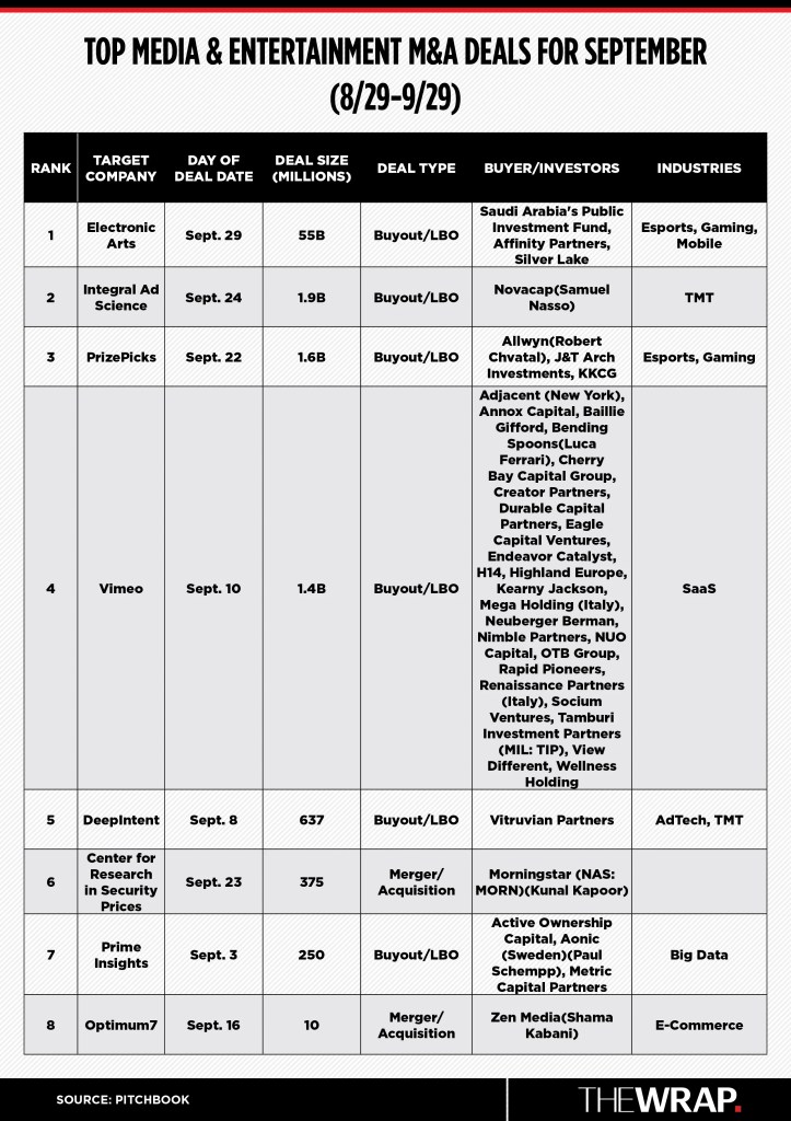 September sure felt a lot of like the 1980s in media and entertainment, with a spate of leverage buyouts, including the largest of all time, defining mergers and acquisitions activity.