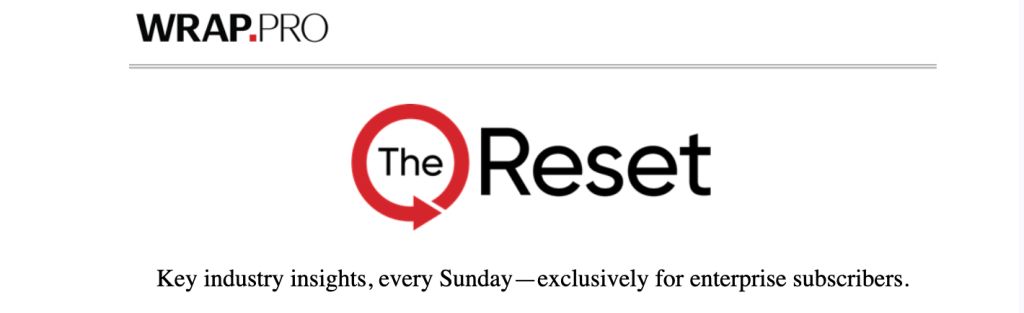 What you’re missing: The Reset is a newsletter we send out every Sunday to the corporate enterprise subscribers to WrapPRO. If you think your company or organization would be interested in signing up for an enterprise plan, please reach out to our head of enterprise sales, Kimberly Donnan, at kimberly.donnan@thewrap.com.