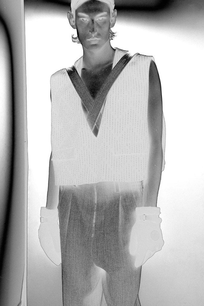 Ben wears vest and pants, both by Emporio Armani, and gloves by Giorgio Armani.