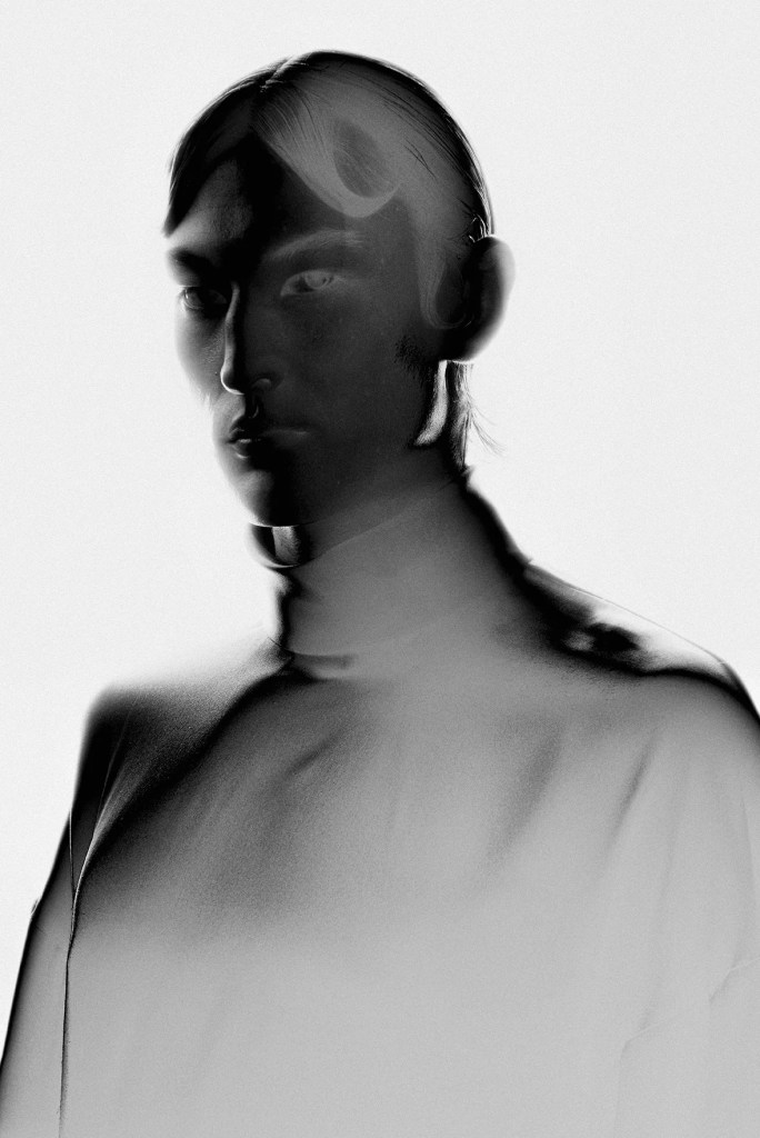Ben wears sweater, pants, boots and belt, all by Giorgio Armani and sunglasses by Gentle Monster.