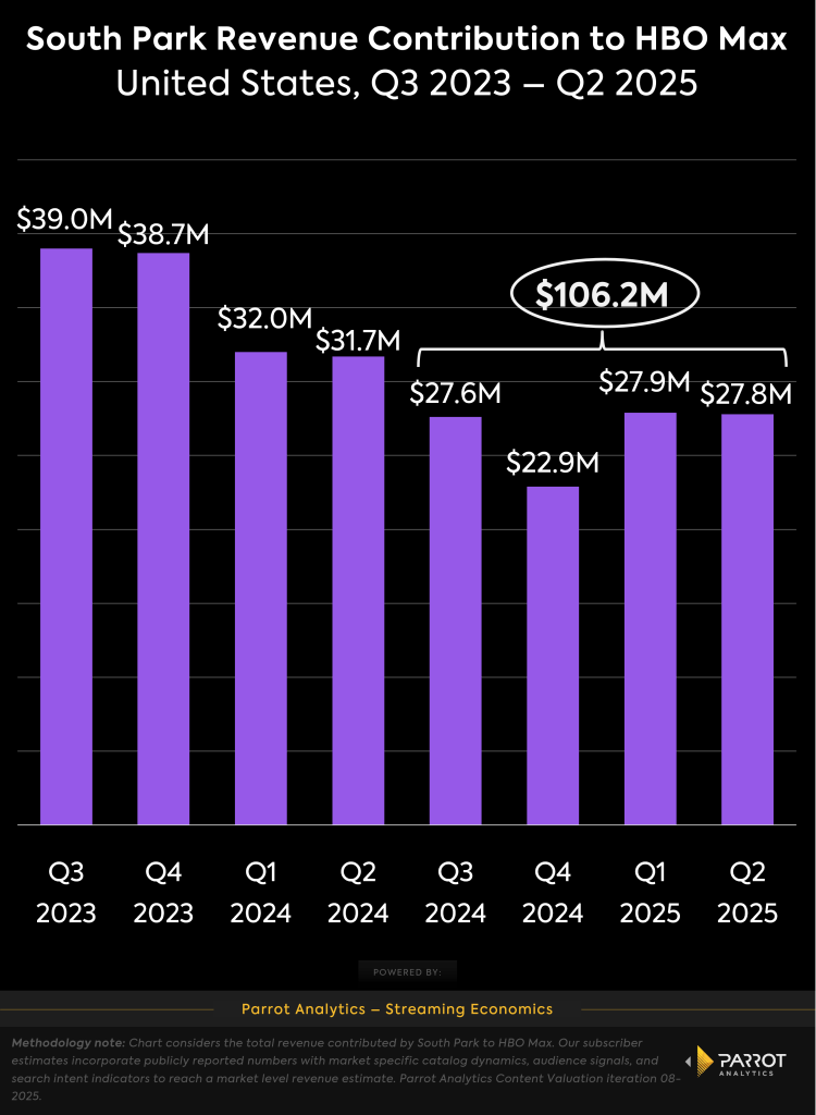 However, the most crucial data point for understanding negotiations is the show’s recent performance. In the last four quarters, “South Park” generated just over $106 million in subscriber revenue for HBO Max. This is with no new season releases on the platform, highlighting the show’s power as an evergreen library title that consistently drives value.